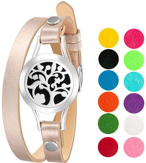 18 reviewsRose Gold Tree of Life bracelet aromatherapy diffuser kit with rose gold leather band, 12 vibrantly colored refill pads so you can customize the co...