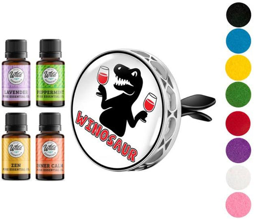 Winosaur car vent aromatherapy diffuser kit with vent clip, 8 vibrantly colored refill pads and comes with 5ml bottles of lavender, lemongrass, ora...