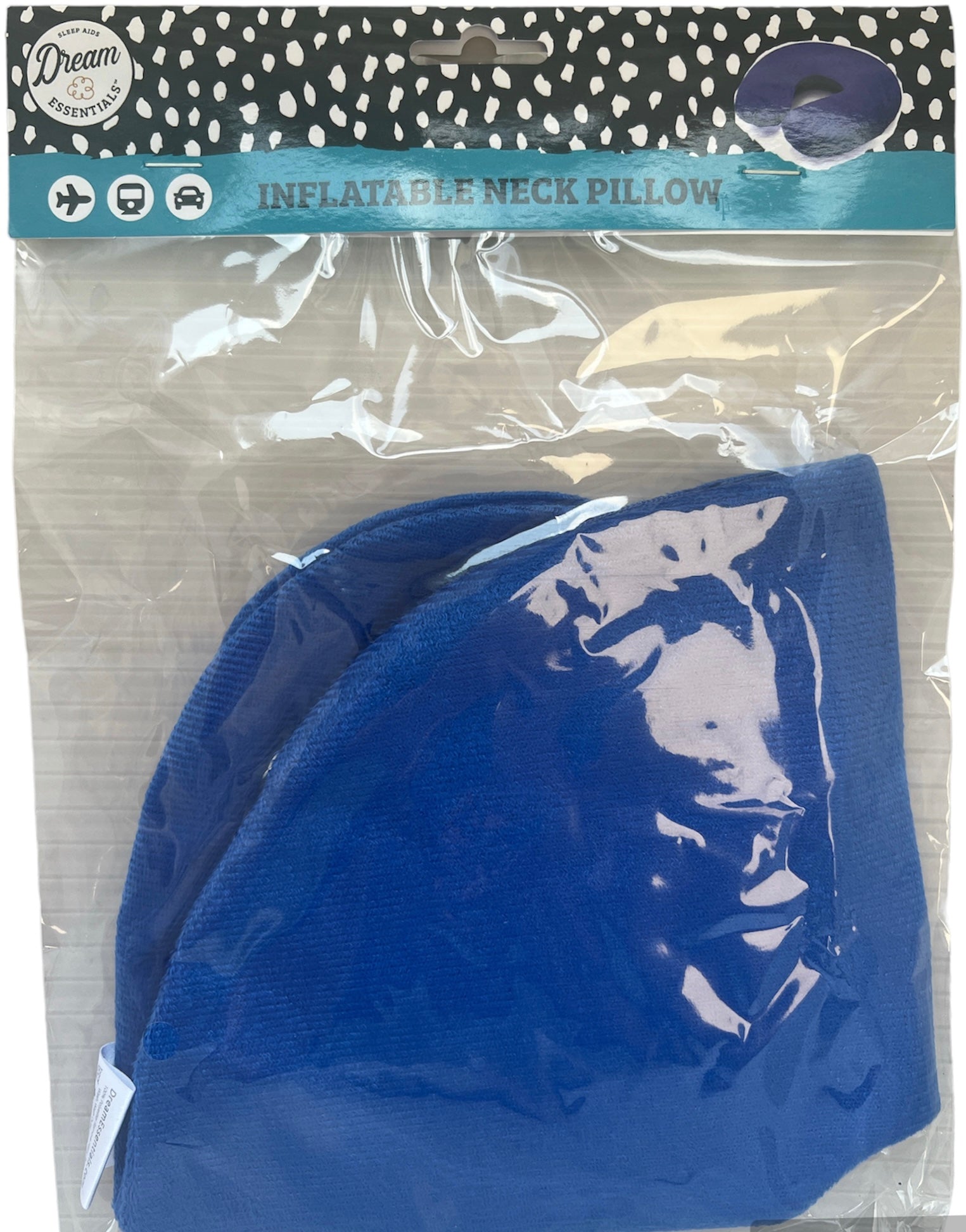 Match up your Sleep Mask with this all new Sleep Neck Pillow designed to prevent your head from swaying from side to side helping you rest and sleep in a more comfortable upright position. Helps to prevent tension and strain in the neck and shoulders so that you arrive at your destination more comfortable and relaxed. This neck pillow for planes inflates in seconds and easily deflates for compact storage, in either a purse, laptop case, hand carry or luggage.