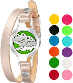 Happy Frog bracelet aromatherapy diffuser kit with rose gold leather band, 12 vibrantly colored refill pads so you can customize the color and look of your bracelet. Use with essential oils or any liquid scent!