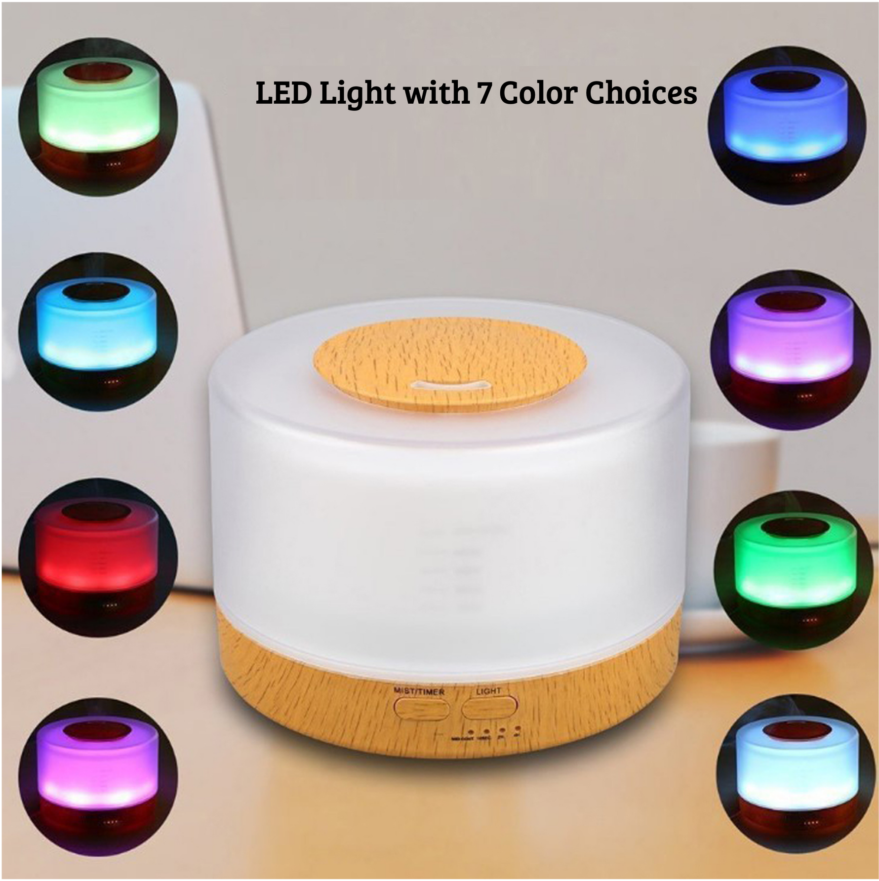 Our home diffuser has a very quiet (under 25dB) operating cycle and uses 2.4 MHZ ultrasonic frequency technology. Our diffuser has an LED nightlight with 7 different colors in both bright and dim modes available so you can keep it on your favorite color or have them automatically change or have no light at all for overnight use!