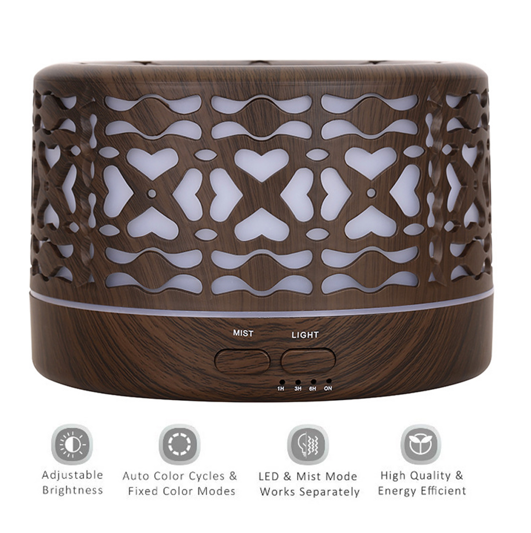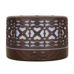 Wild Essentials home diffusers are the perfect solution to diffuse in any size room. Our 700ml diffuser has a dark wood finish with a hearts design carved into the side of the shell, and moons and stars on the top. Also comes with a remote control, uses AC power and is an aromatherapy/essential oil diffuser, humidifier, vaporizer, air freshener and multi colored nightlight - all in one! Simply fill the water chamber with up to 700ml of water (about 3 cups) and a few drops of your favorite essential oil or fragrance for up to 20 hours of use!
