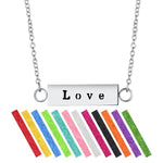 Wild Essentials "Love" bar aromatherapy necklace diffusers made with a hypoallergenic, surgical grade 316L stainless steel pendant and an adjustable 24" chain. Also includes 12 vibrantly colored, premium refill pads and work with any brand of essential oils or fragrance.