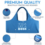 Fun, functional yoga tote in 8oz cotton canvas — fits any mat size with room for blocks, towels, and gear.
