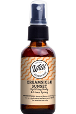 Our Wild Essentials Creamsicle Sunset uplifting spray is a great blend that brings those summertime vibes, lifts the spirit and smells amazing! Great to use as a perfume or signature scent and made with a proprietary synergy blend combination of orange sweet pure essential oil and vanilla oleoresin oil pre-diluted and ready to use! Our sprays are made with all natural, organic witch hazel and distilled water for safe application. Spray on your skin, clothes, linens, bathroom, as an air freshener or anywhere you want for an amazing orange cream experience!