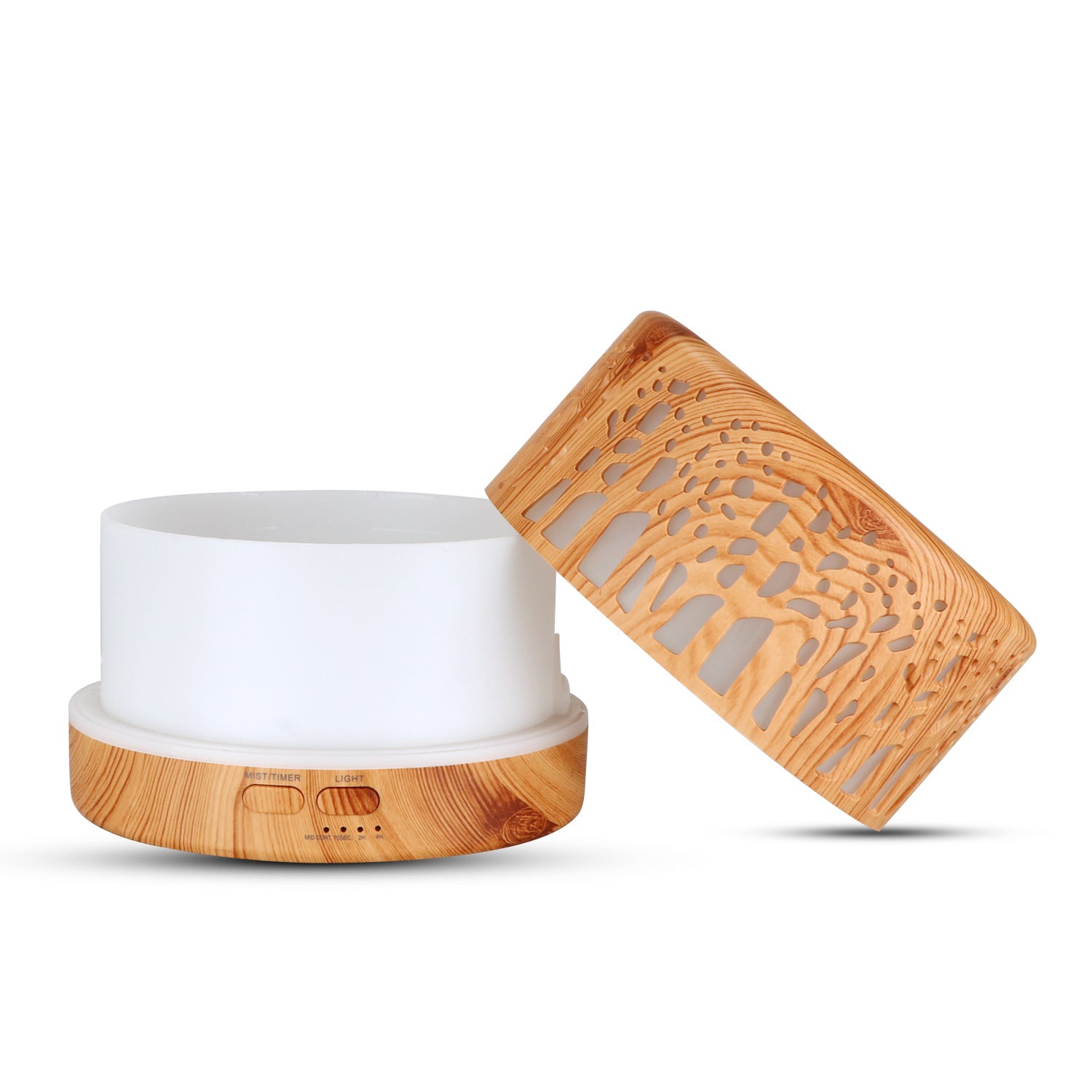 Wild Essentials home diffusers are the perfect solution to diffuse in any size room. Our 700ml diffuser has a light wood finish with a tree design carved into the side of the shell, and moons and stars on the top. Also comes with a remote control, uses AC power and is an aromatherapy/essential oil diffuser, humidifier, vaporizer, air freshener and multi colored nightlight - all in one! Simply fill the water chamber with up to 700ml of water (about 3 cups) and a few drops of your favorite essential oil or fragrance for up to 20 hours of use!