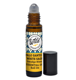 A Smudge blend in an all natural roll-on! Housed in a slim 10ml amber glass bottle with a premium stainless steel roller ball for easy and smooth application. Wild Essential Smudge oil synergy blend is made with palo santo, white sage pure essential oils and organic jojoba oil. A great smoke free, healthy alternative to burning smudge sticks or wood. This blend is used to cleanse negative energy, raise your vibration, add positivity and bring good fortune. This sacred sage and holy wood oil blend is calming, provides balance and can uplift the spirits